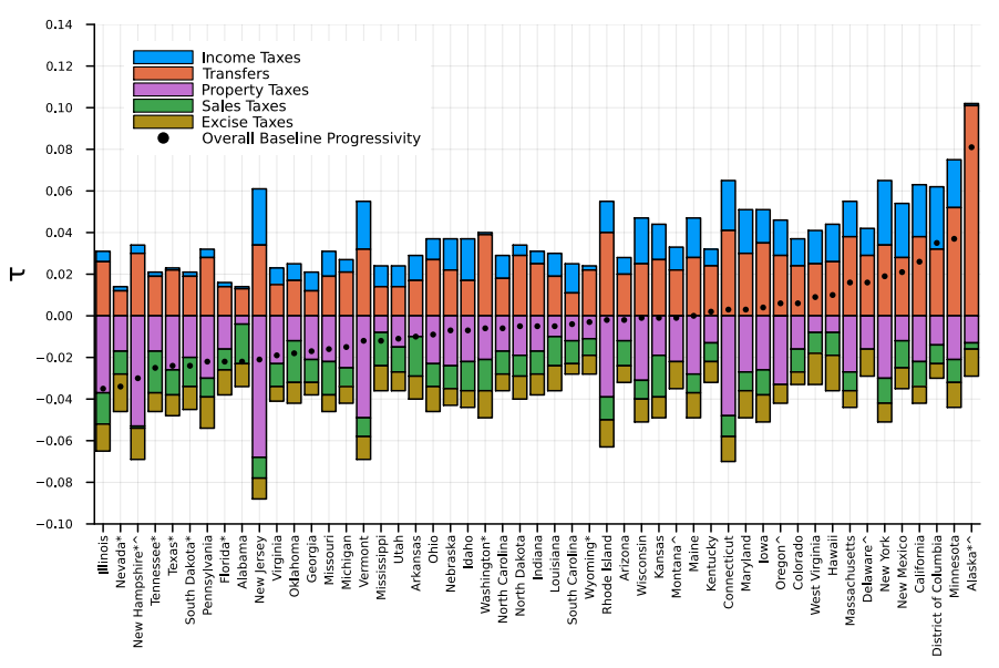 ما هي الدول التي لديها نظام الضرائب الأكثر تقدمية؟ ألاسكا ، مينيسوتا ، العاصمة ، كاليفورنيا ونيو مكسيكو تتصدر القائمة.
